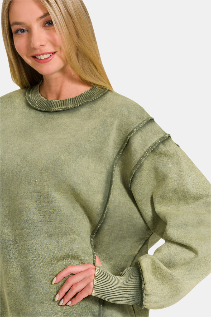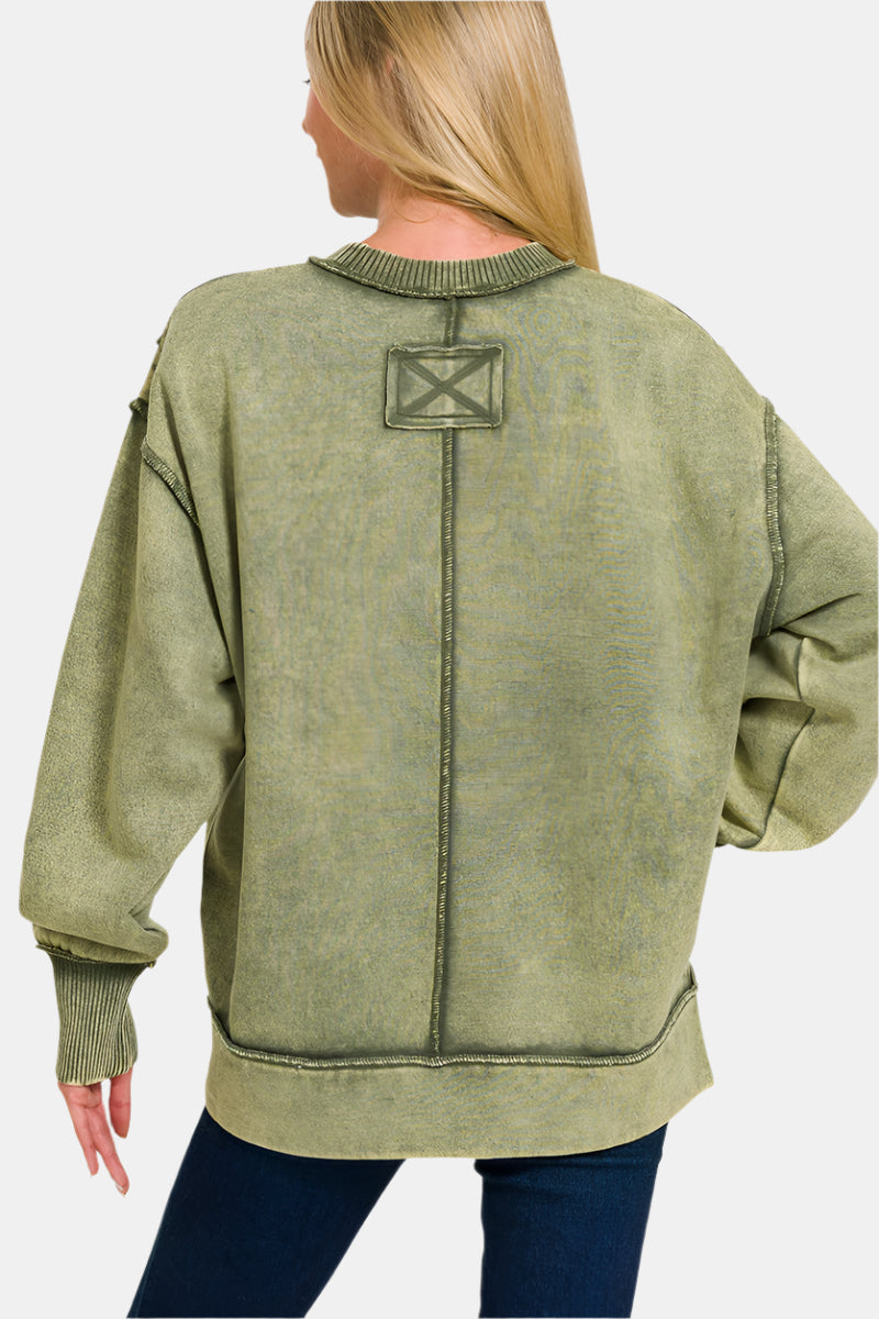 Acid Wash Exposed-Seam Fleece Sweatshirt / MARLIN