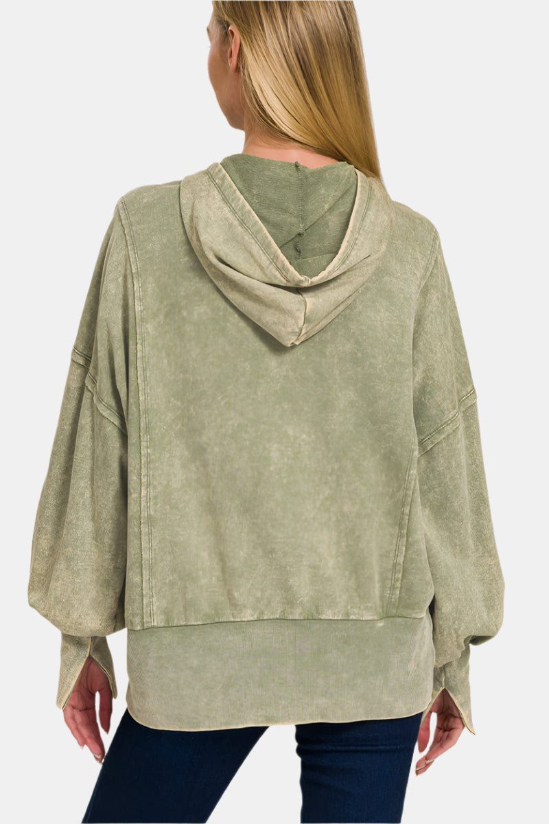 This full-zip hoodie made with French Terry sports a distinctive acid wash and convenient pockets for essentials.