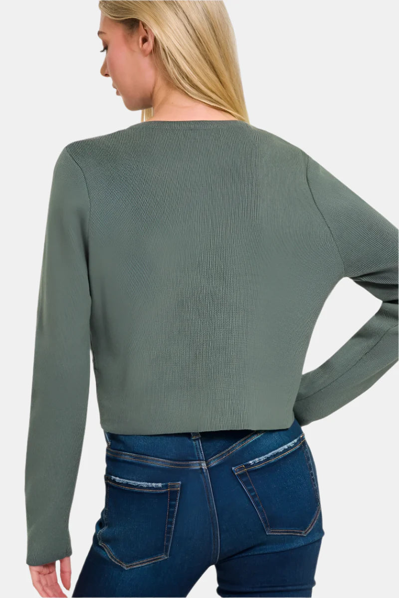 7 Button Crewneck Long Sleeve Cardigan / MARLIN