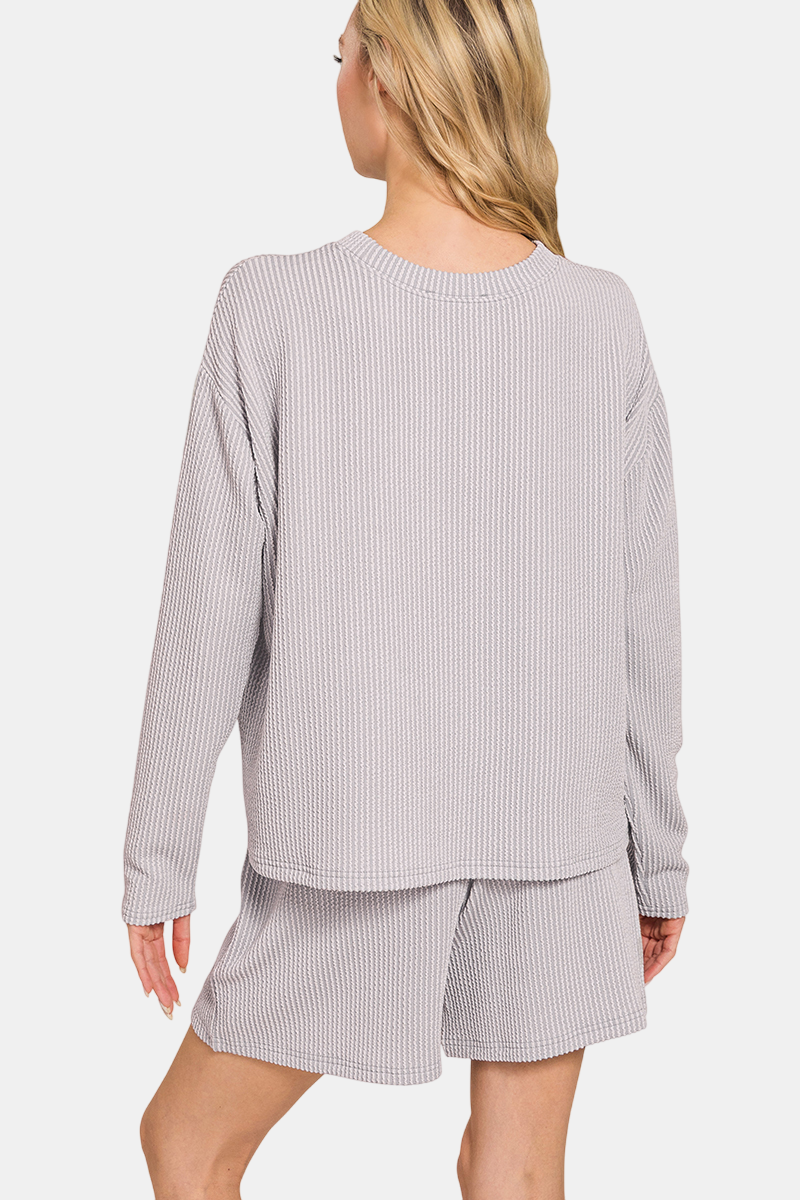 Raised Rib Long Sleeve Tee & Shorts Set / RUBY