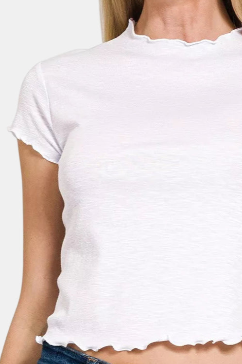 Modal Slub Lettuce Trimmed Cropped Tee / WHITE