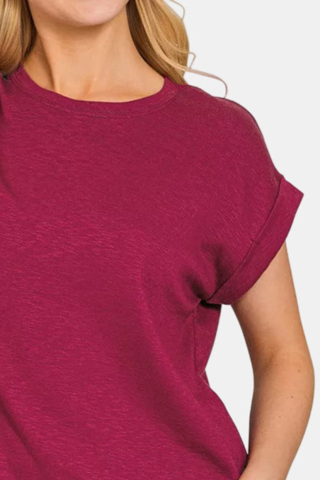 Cotton Modal Slub Rolled Sleeve Tee / CABERNET