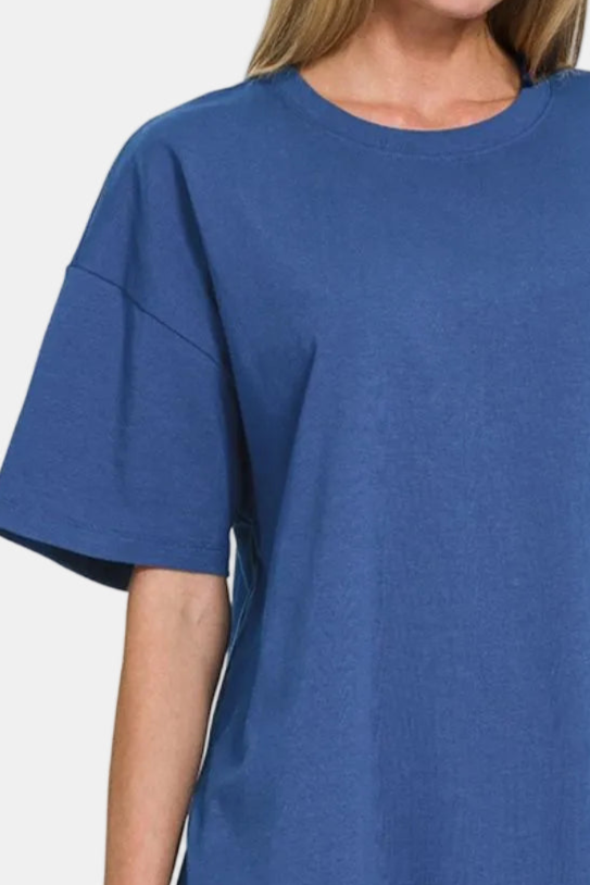 Cotton Round Neck Top & Biker Shorts Set / LT NAVY