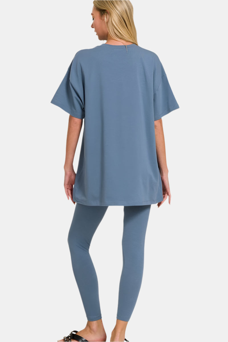 Cotton Round Neck Top & Legging Set / DUSTY BLUE