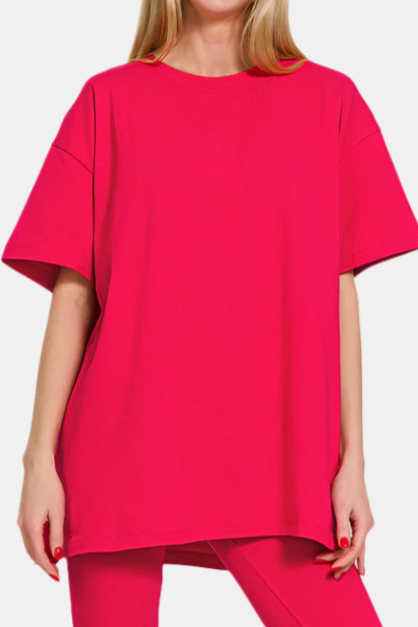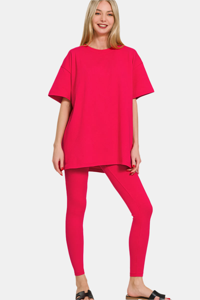 The soft comfort of this cotton set combines a short-sleeve oversized T-shirt with cozy leggings and easily goes from catching some Z's to weekend lounging.