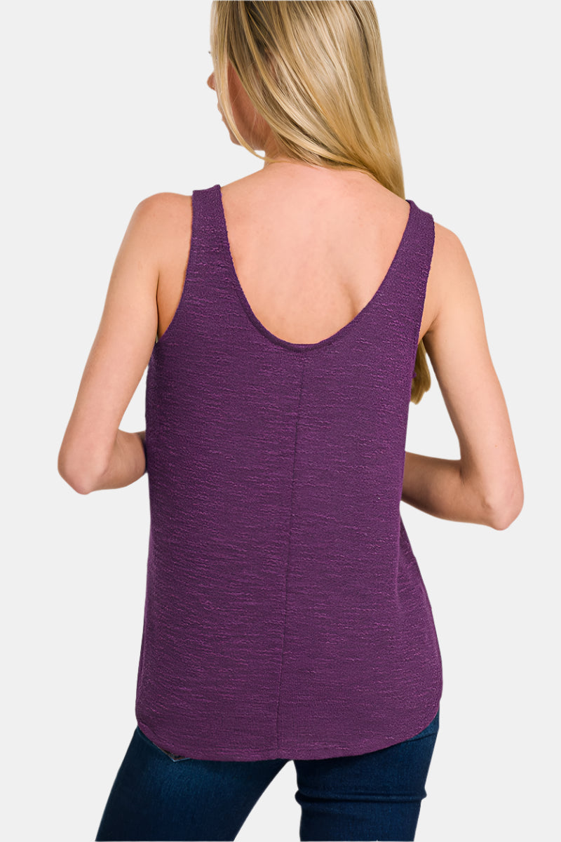 Slub Hacci Double Scoop Neck Tank Top / LT MOCHA