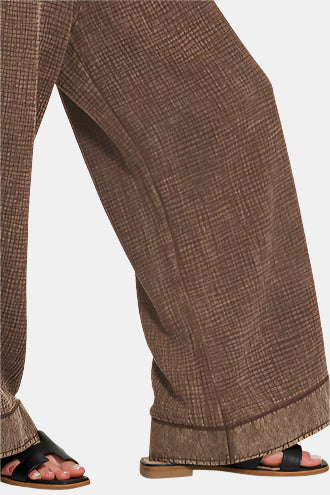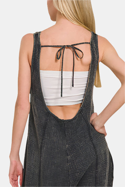 Breezy double gauze and an acid-washed finish lend effortless edge to these relaxed wide-leg overalls, complete with pockets and a playful tie-back detail.