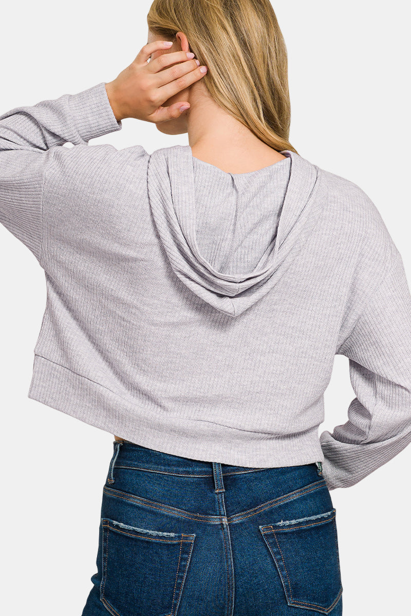 Chilly days call for the relaxed fit of this cropped hooded sweater made from soft ribbed knit.
