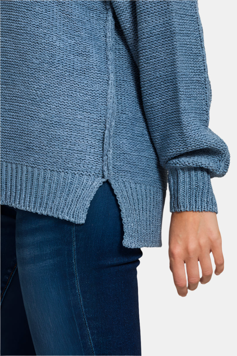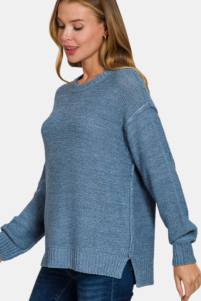 Exposed seams lend modern edge to this oversized sweater with a relaxed, drop-shoulder silhouette.