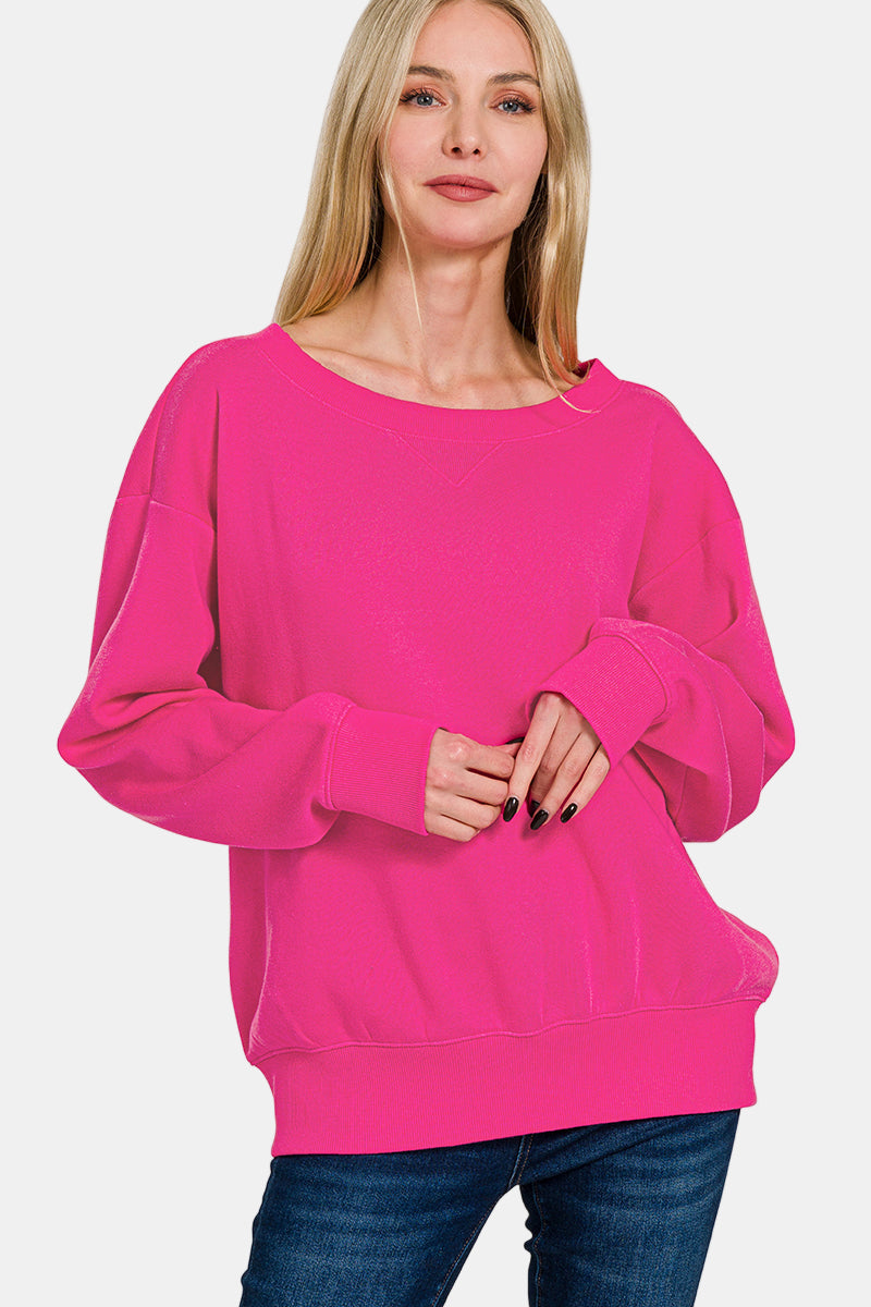 Feel the comfort of this soft fleece set featuring a boat neck sweatshirt and drawstring shorts.