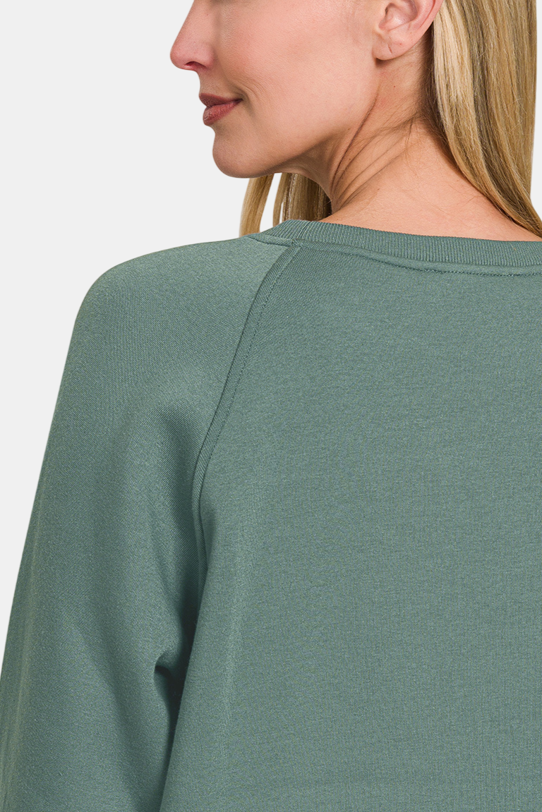 Fleece Raglan Round-Neck Sweatshirt / DUSTY BLUE