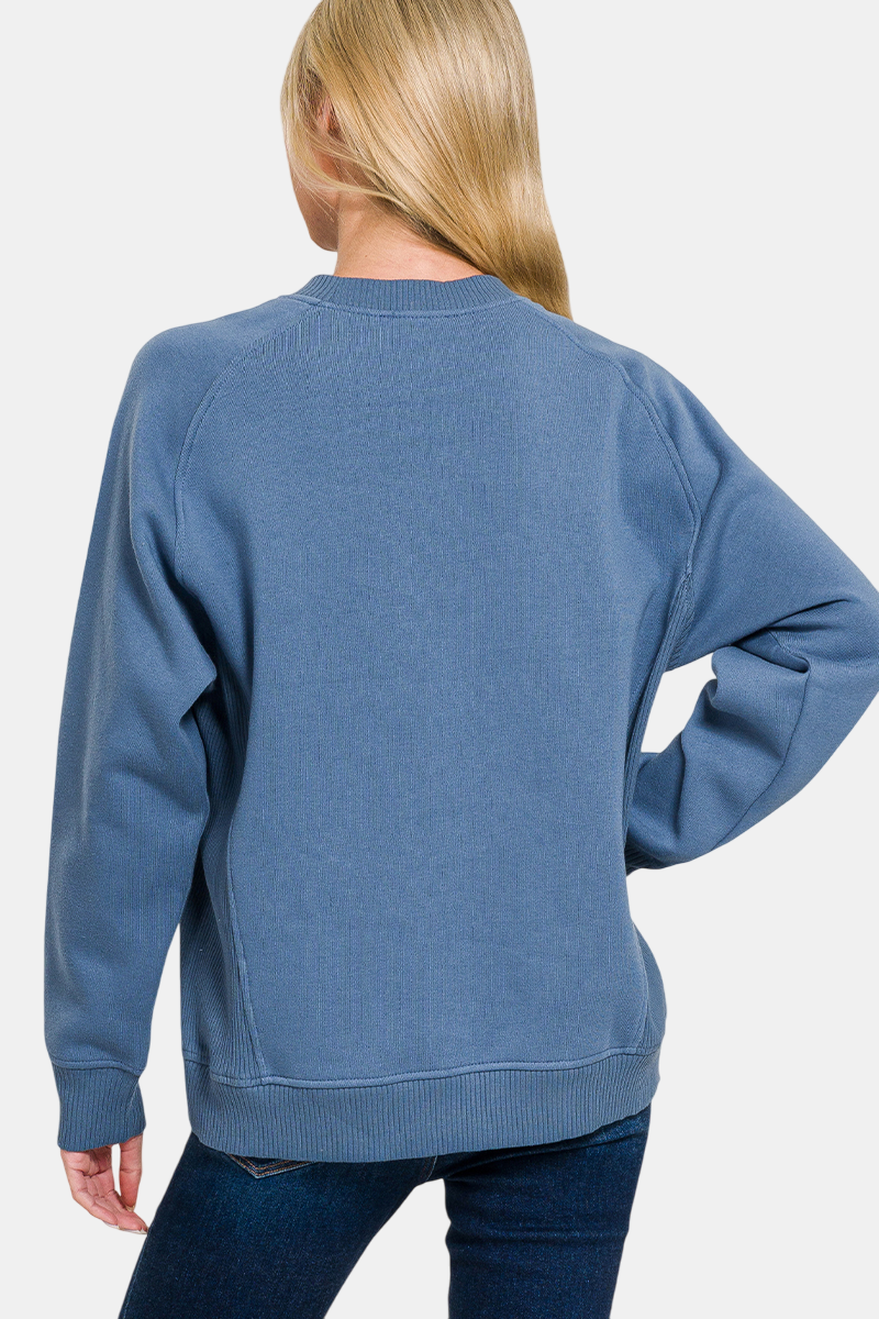 Fleece Round Neck Ribbed Side Raglan Sweatshirt / RUBY