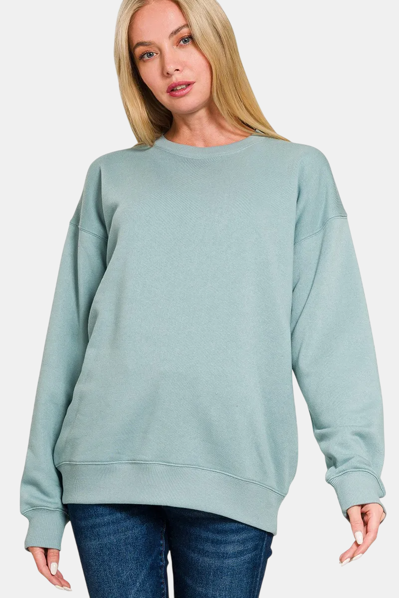 Fleece Round Neck Sweatshirt / BLUE GREY