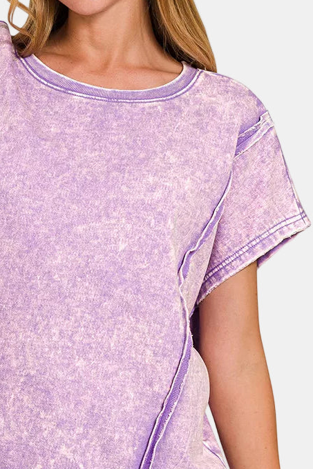 French Terry Acid Washed Hi-Low Top / LAVENDER