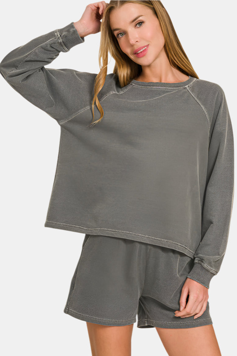 French Terry Pigment Dye + Enzyme Wash Pullover & Short Set / BLACK