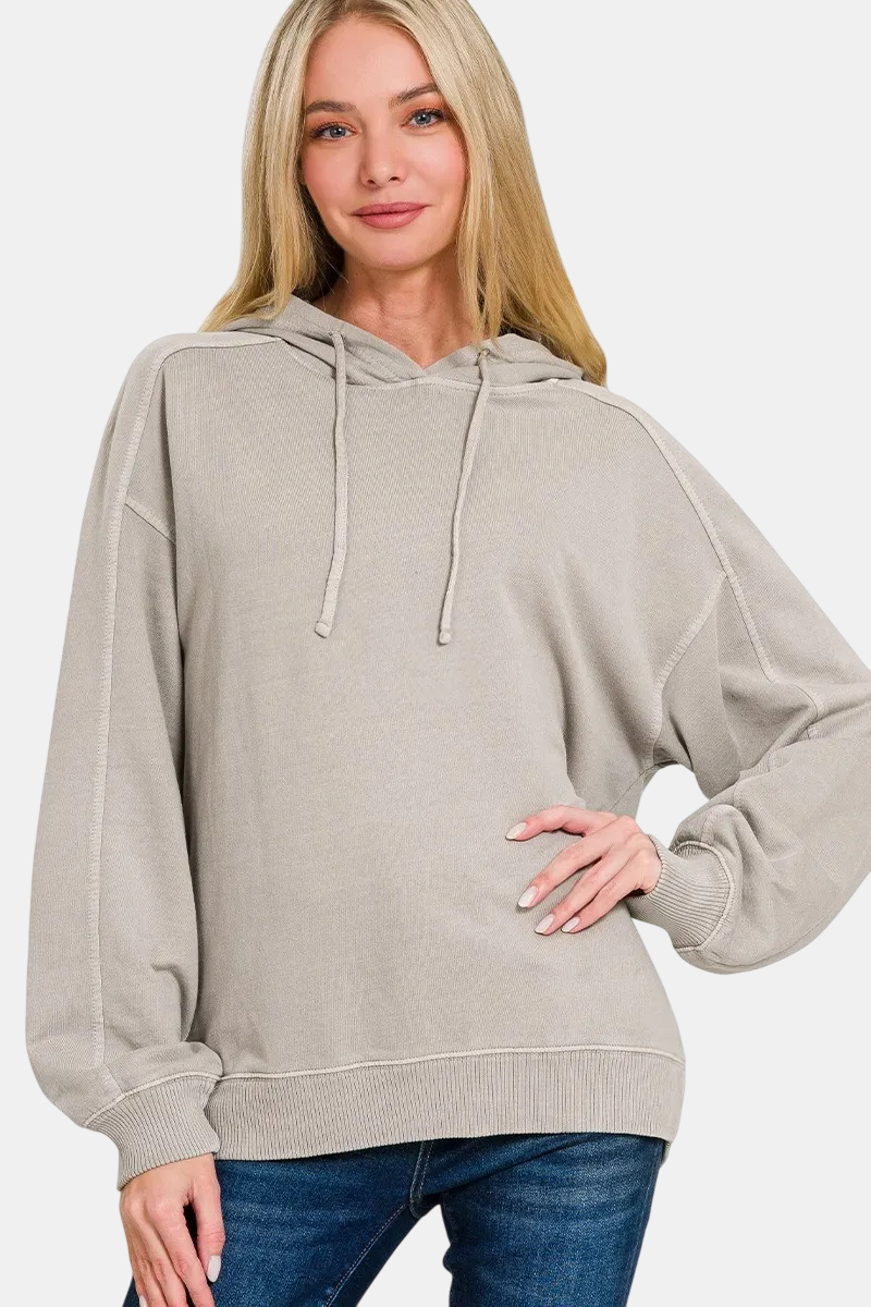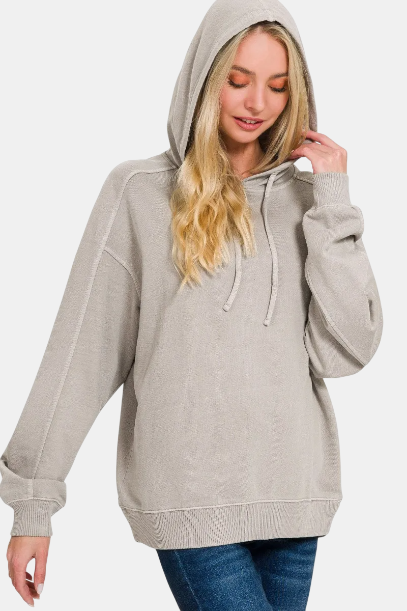 French Terry Pigment Dye & Enzyme Washed Hoodie / ASH MOCHA