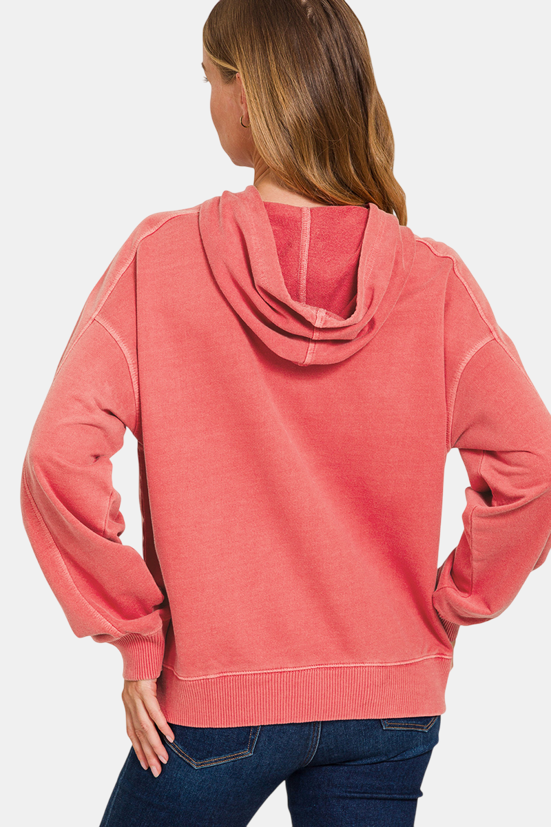 This slouchy pure cotton hoodie features pigment dye and an enzyme-washed finish for a softer feel and a perfectly faded look.