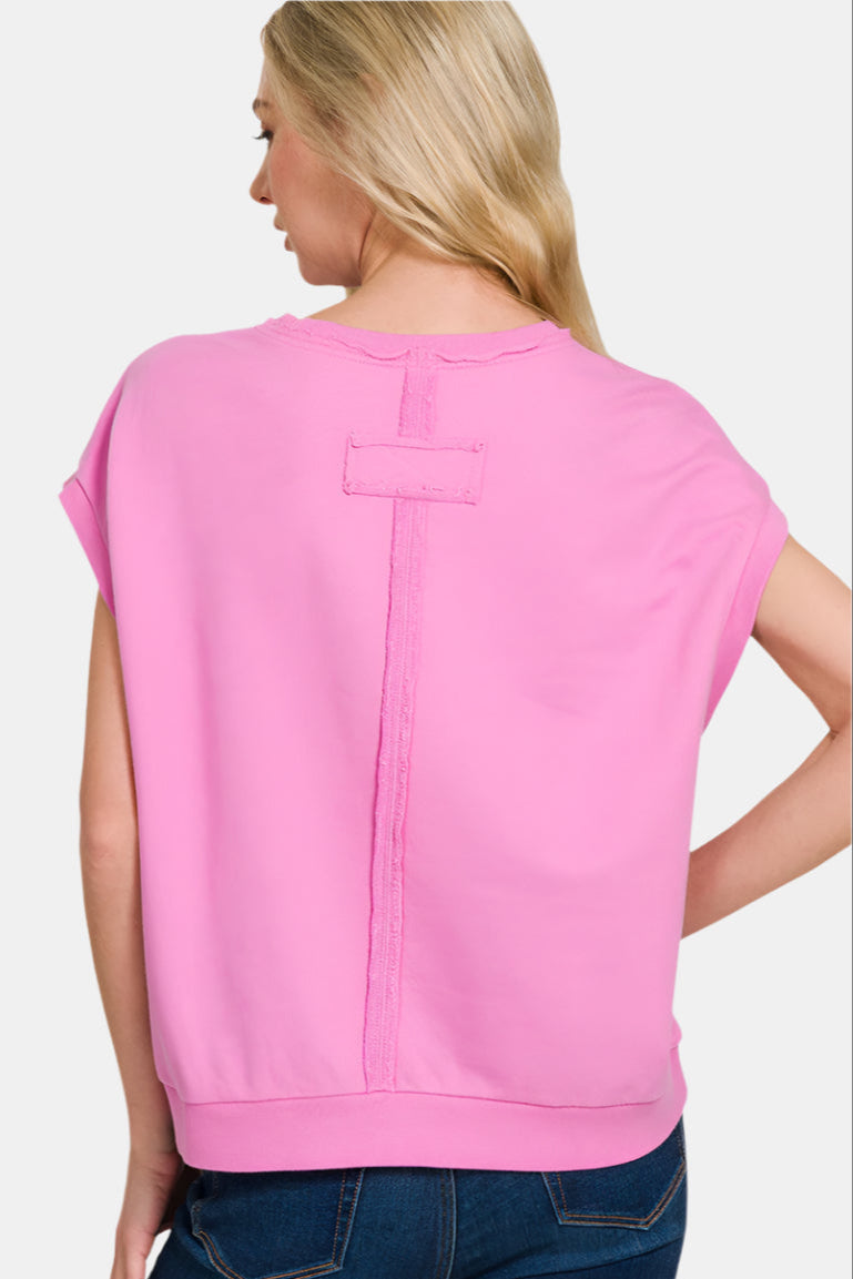 Crafted from soft French terry, this sleeveless crewneck top stands out with a back patch detail and exposed center seam for a laid-back, modern edge.