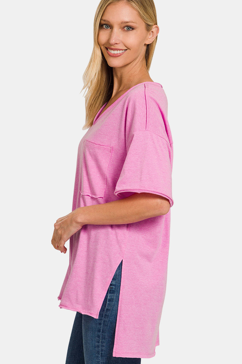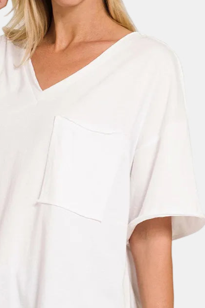 Front Pocket Raw Edge Boyfriend Tee / WHITE