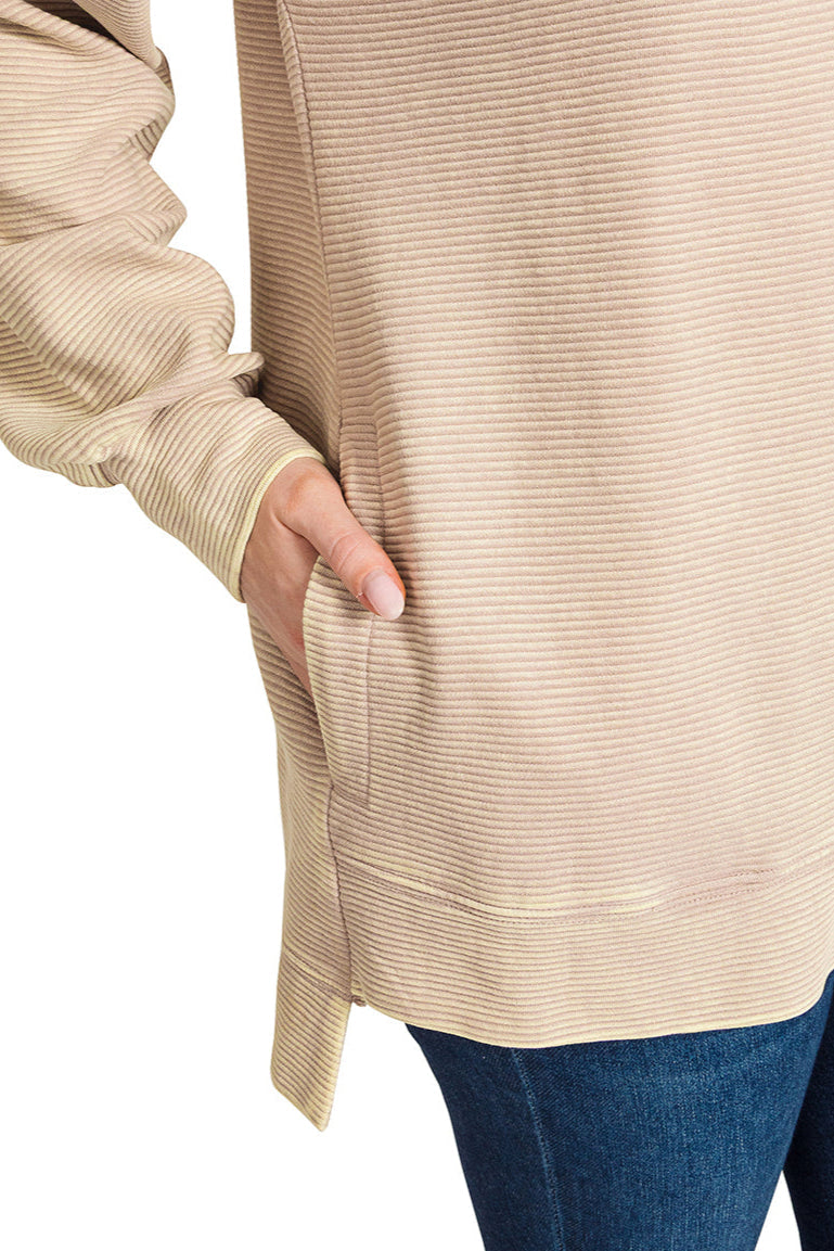 Acid Washed Double Ribbed Hi-Low Pullover / BLACK