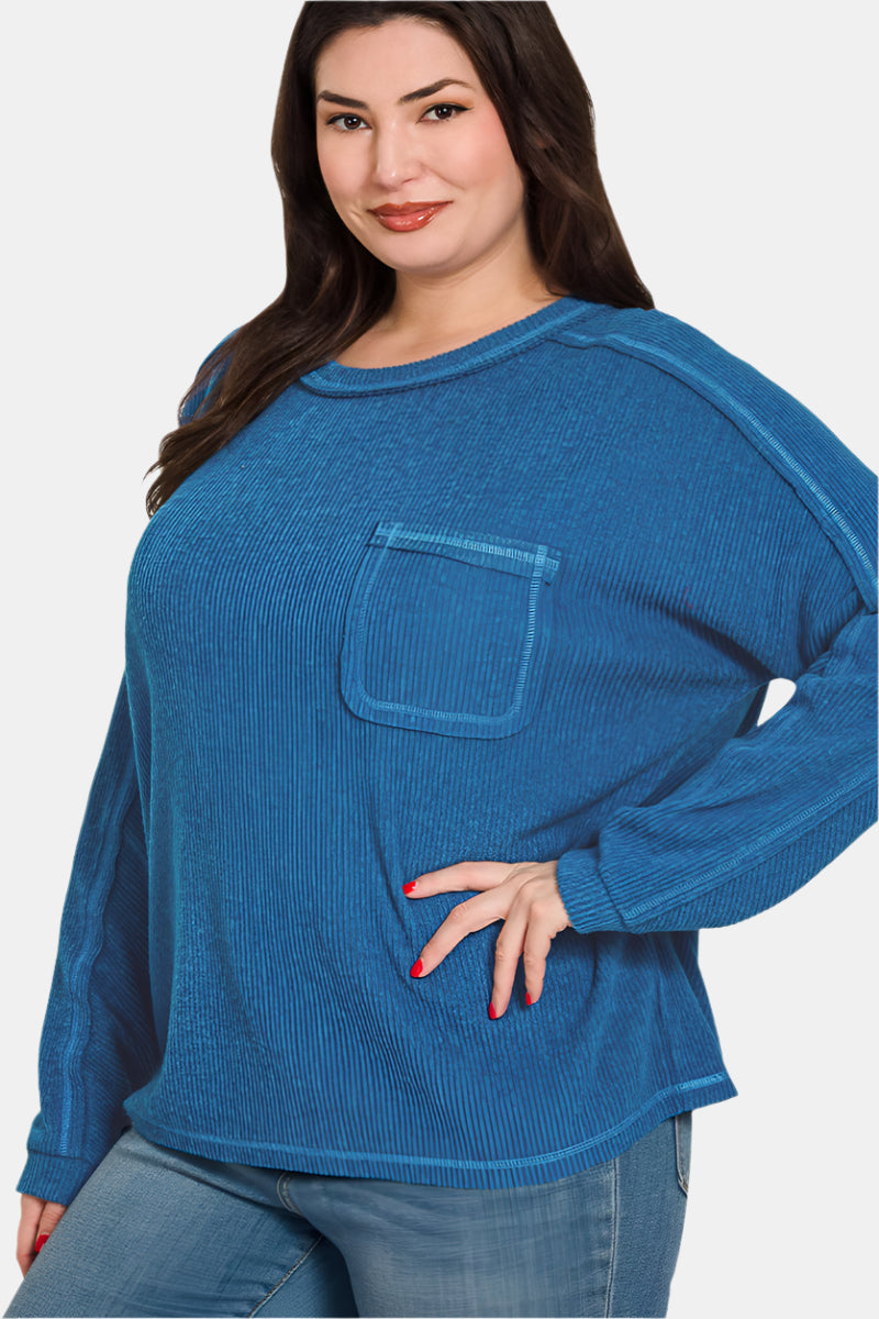 Brushed Ribbed Hacci Round Neck Sweater / CLASSIC BLUE
