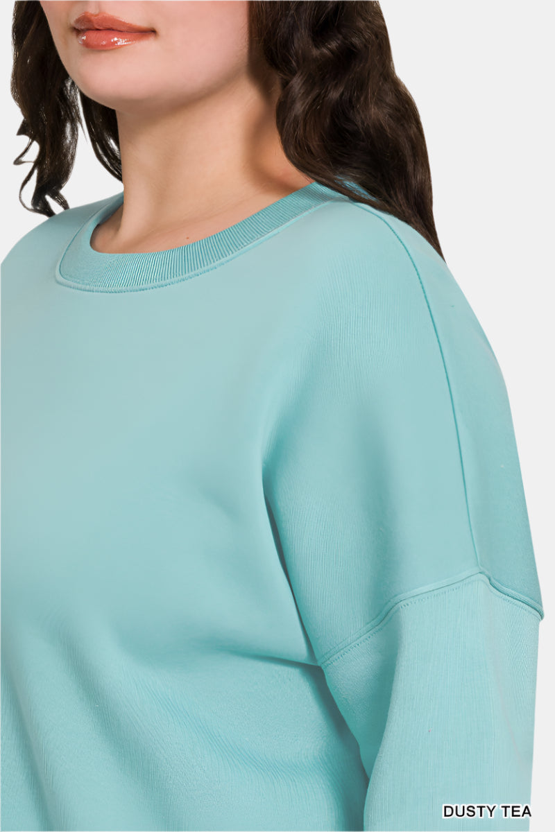 Fleece Drop Shoulder Sweatshirt / BLACK