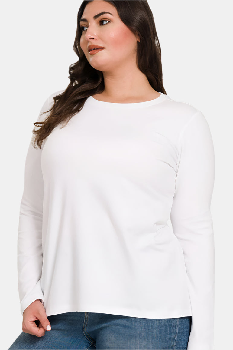 Cotton Crew Neck Long Sleeve T-Shirt / WHITE