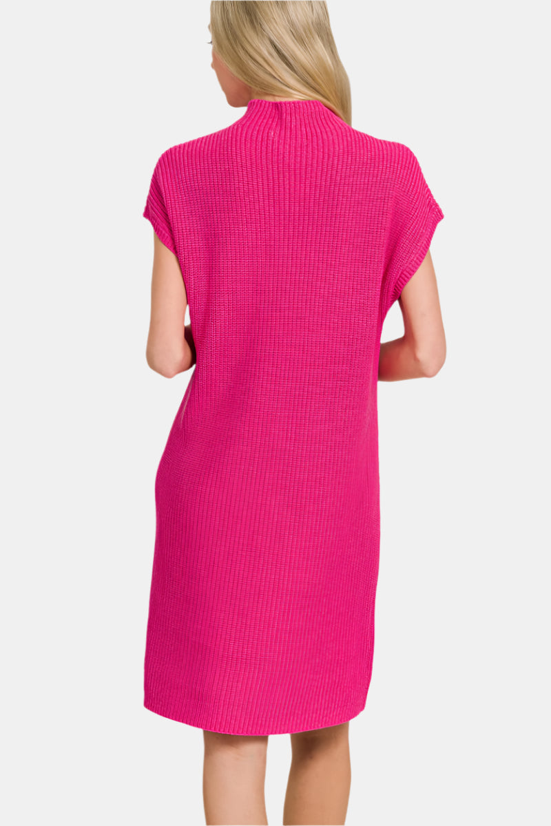 Stay cozy in this soft sweater-dress made with a mock neck and dolman sleeves.