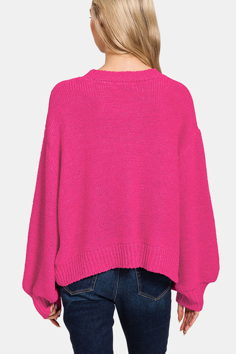 Amp up your cozy vibe in this loose fitting sweater made with slouchy balloon sleeves.