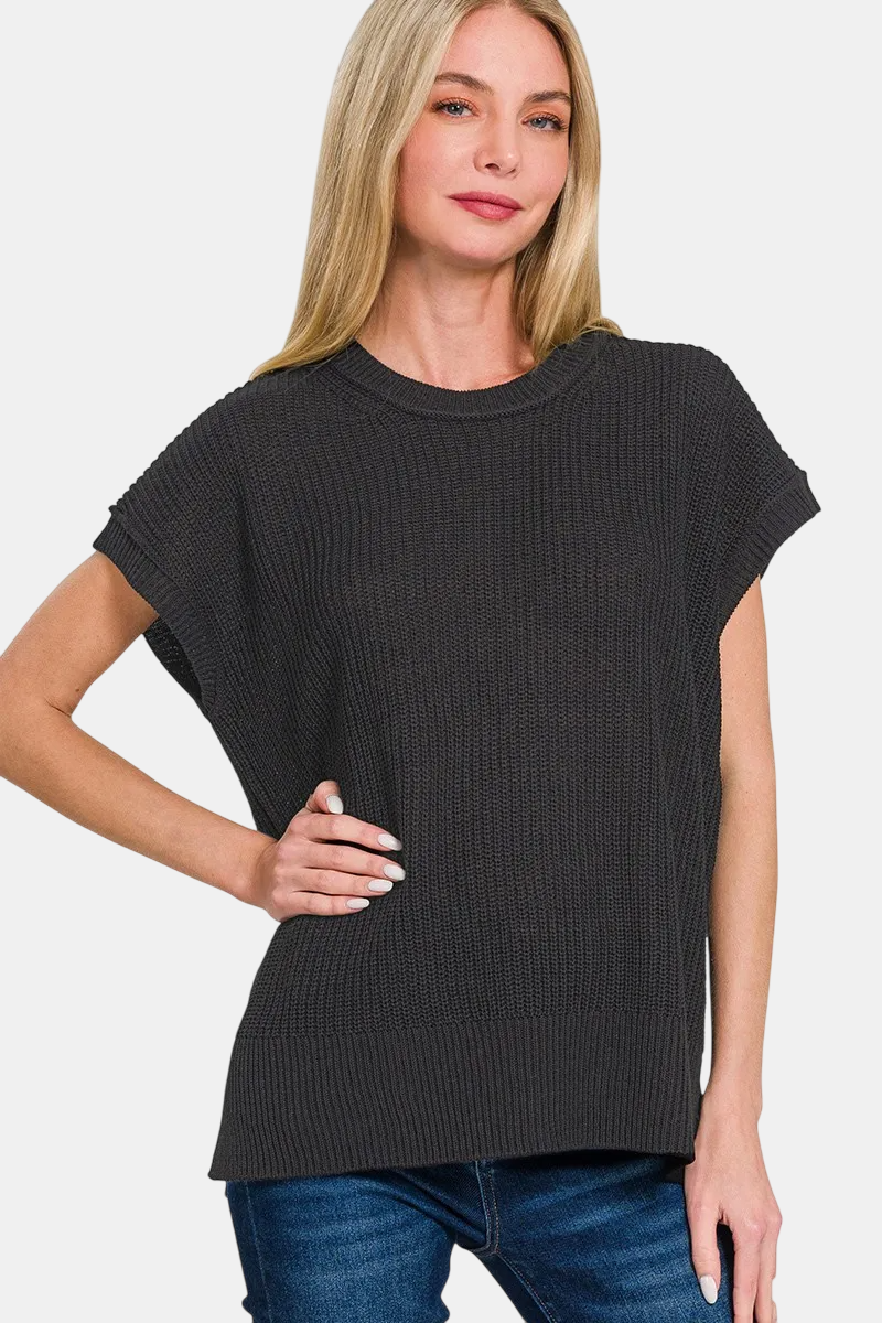 Oversized Crew Neck Sweater Vest / BLACK