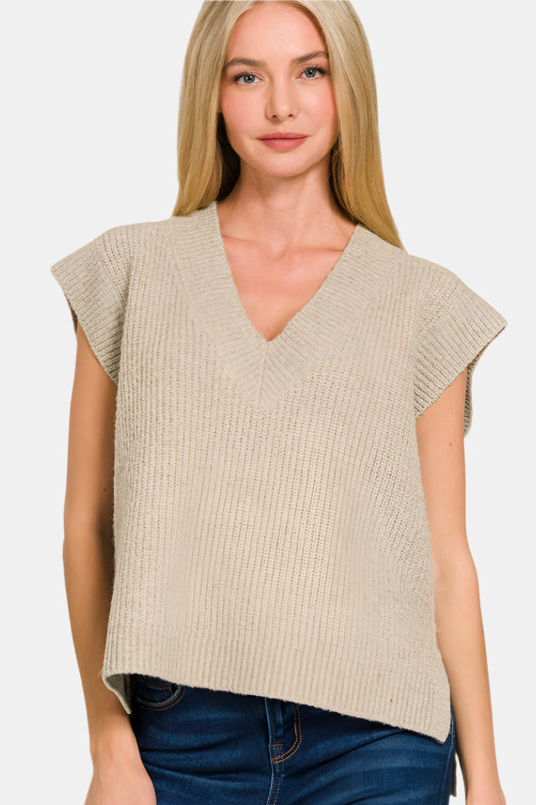 Oversized Sweater Vest with Side Slit / H MOCHA