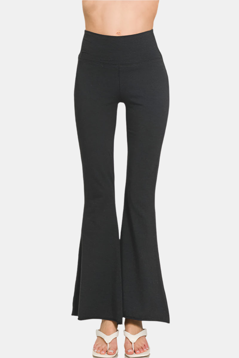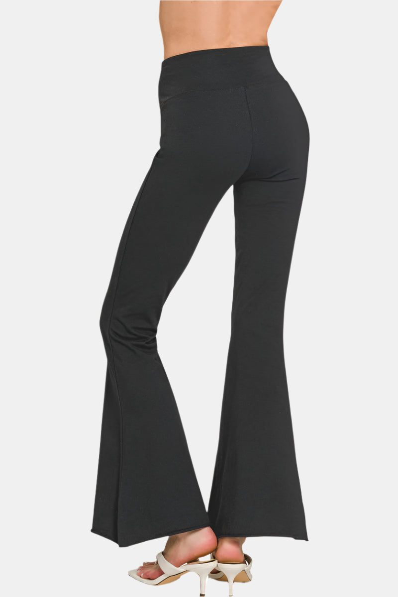 Raw Edge Hem Flare Yoga Pants / BLACK