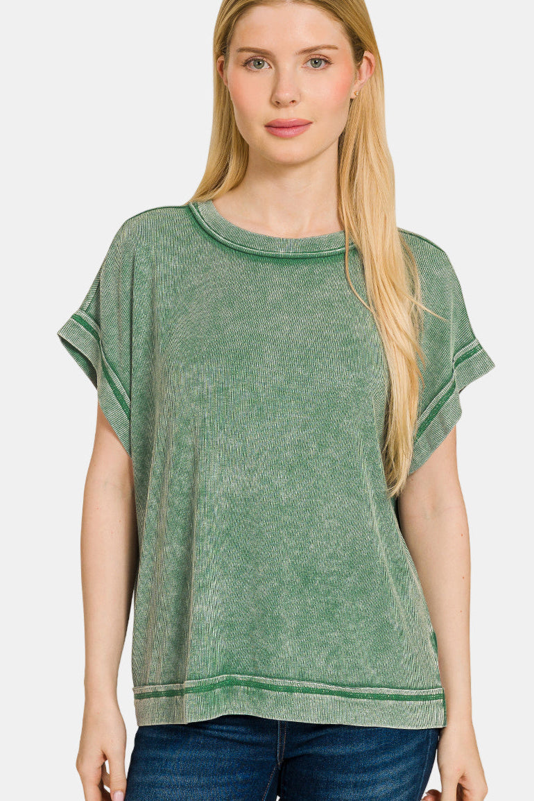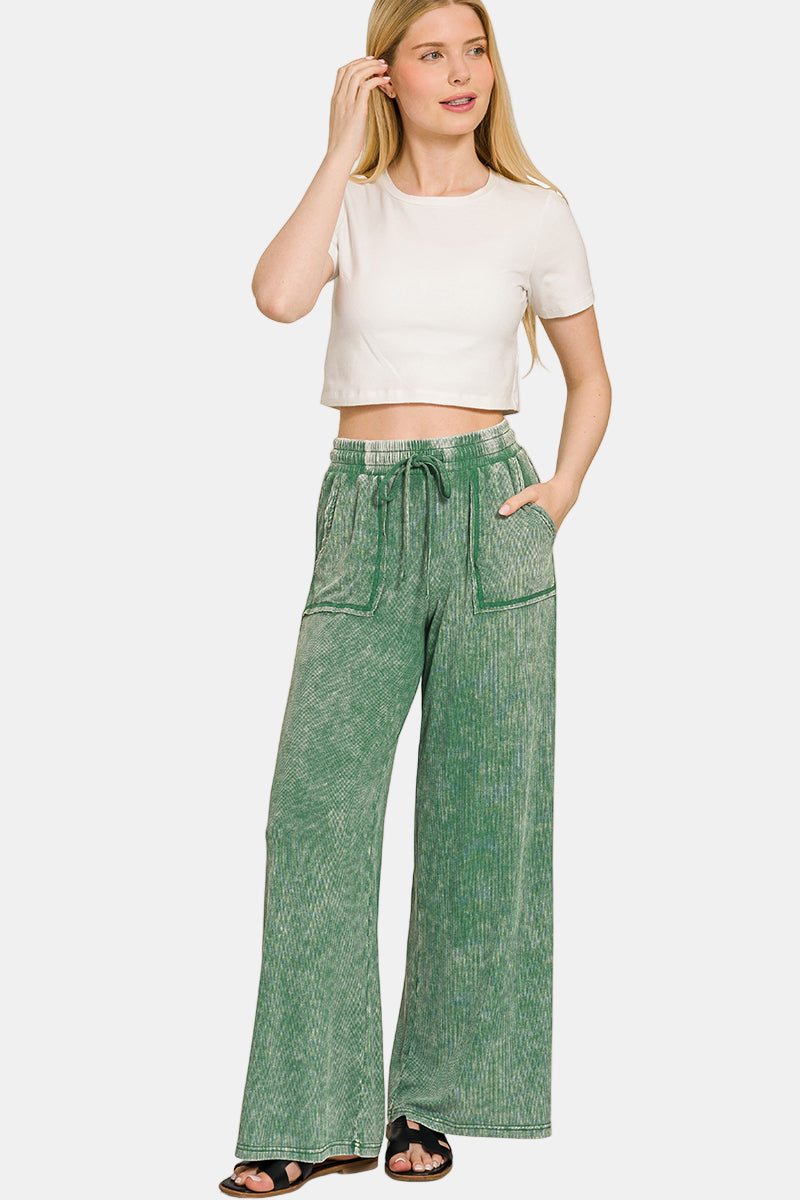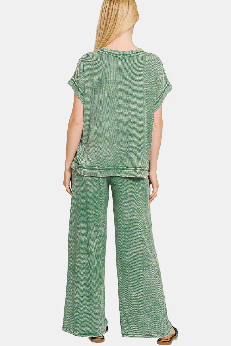 Ribbed Acid Wash Rayon Top & Pants Set / LAVENDER