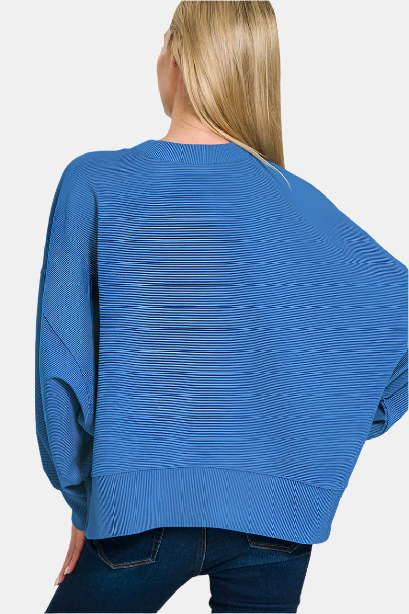 This oversized sweatshirt is made from cozy ribbed knit with voluminous balloon sleeves.