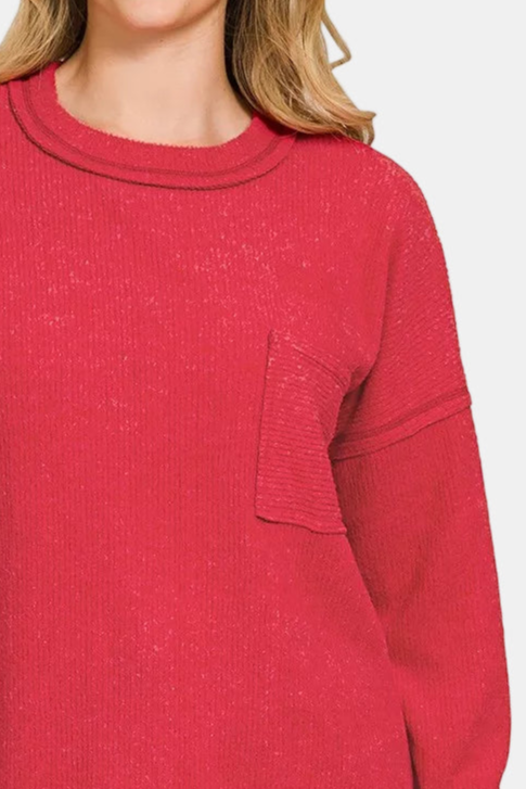 Ribbed Brushed Melange Hacci Sweater / DK RED