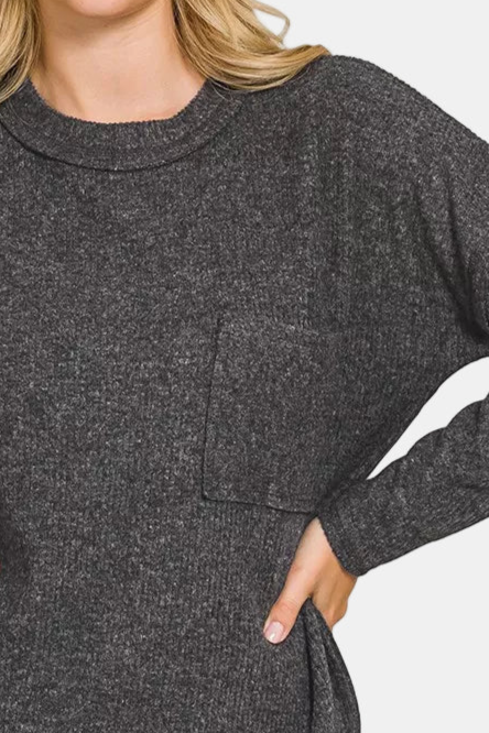 Ribbed Brushed Melange Hacci Sweater / BLACK