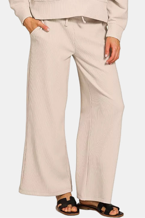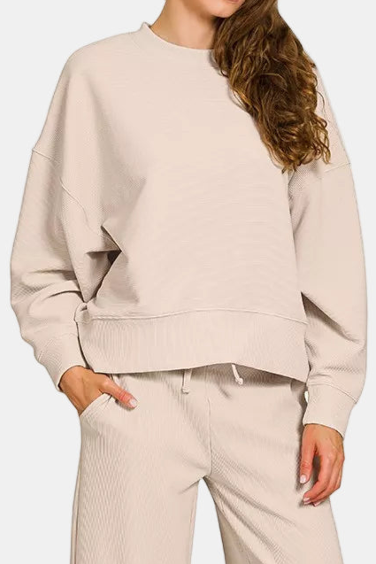 Ribbed Round Neck Pullover & Pants Set / SAND BEIGE