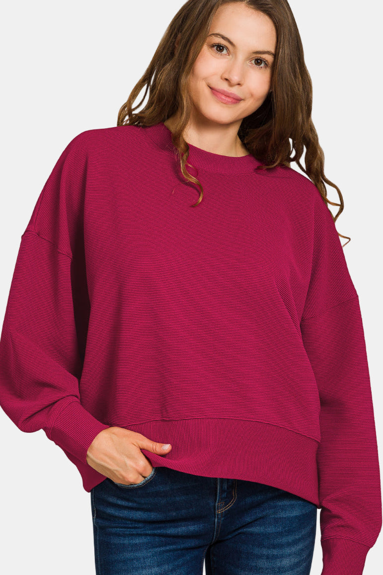 Ribbed Round Neck Pullover & Pants Set / ASH MOCHA