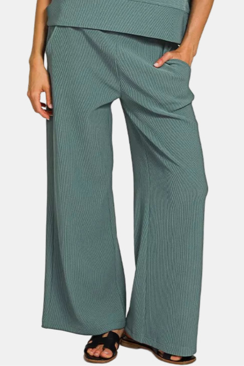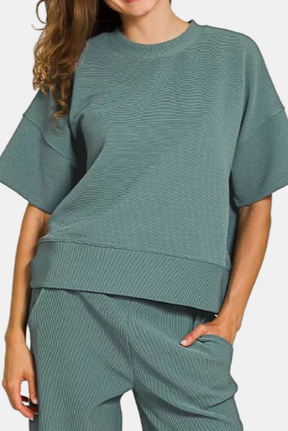 Ribbed Round Neck Tee & Pants Set / ASH JADE