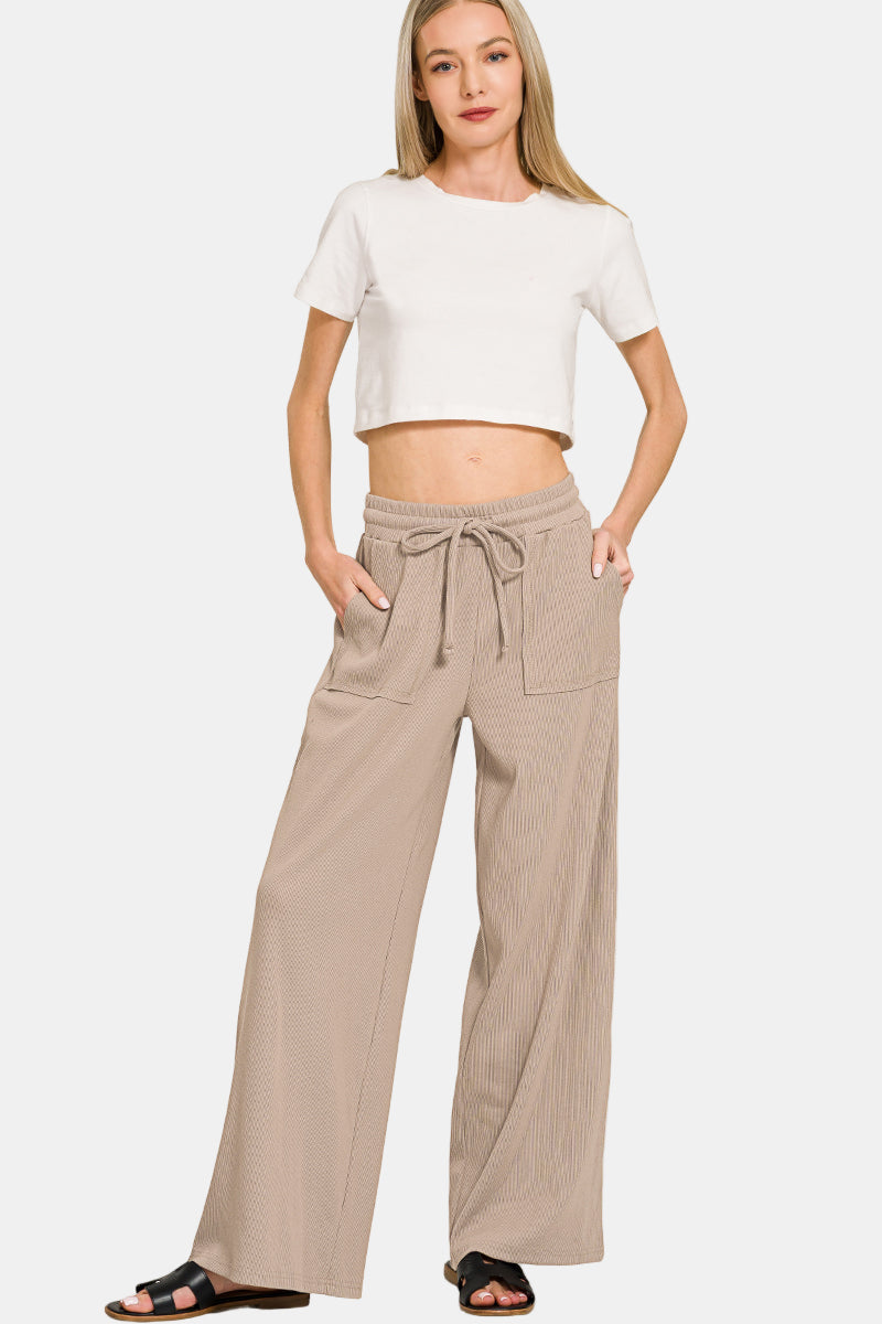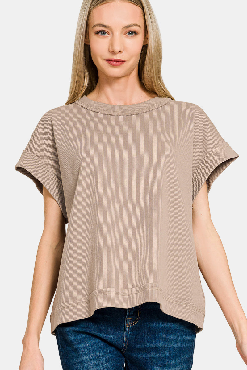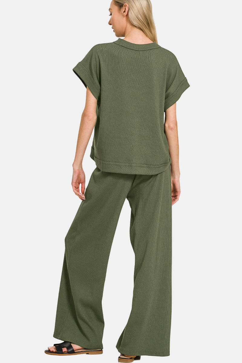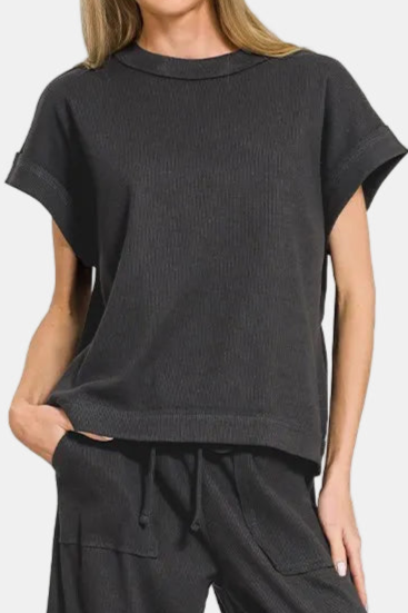 Ribbed Short Sleeve Tee & Pants Set / BLACK