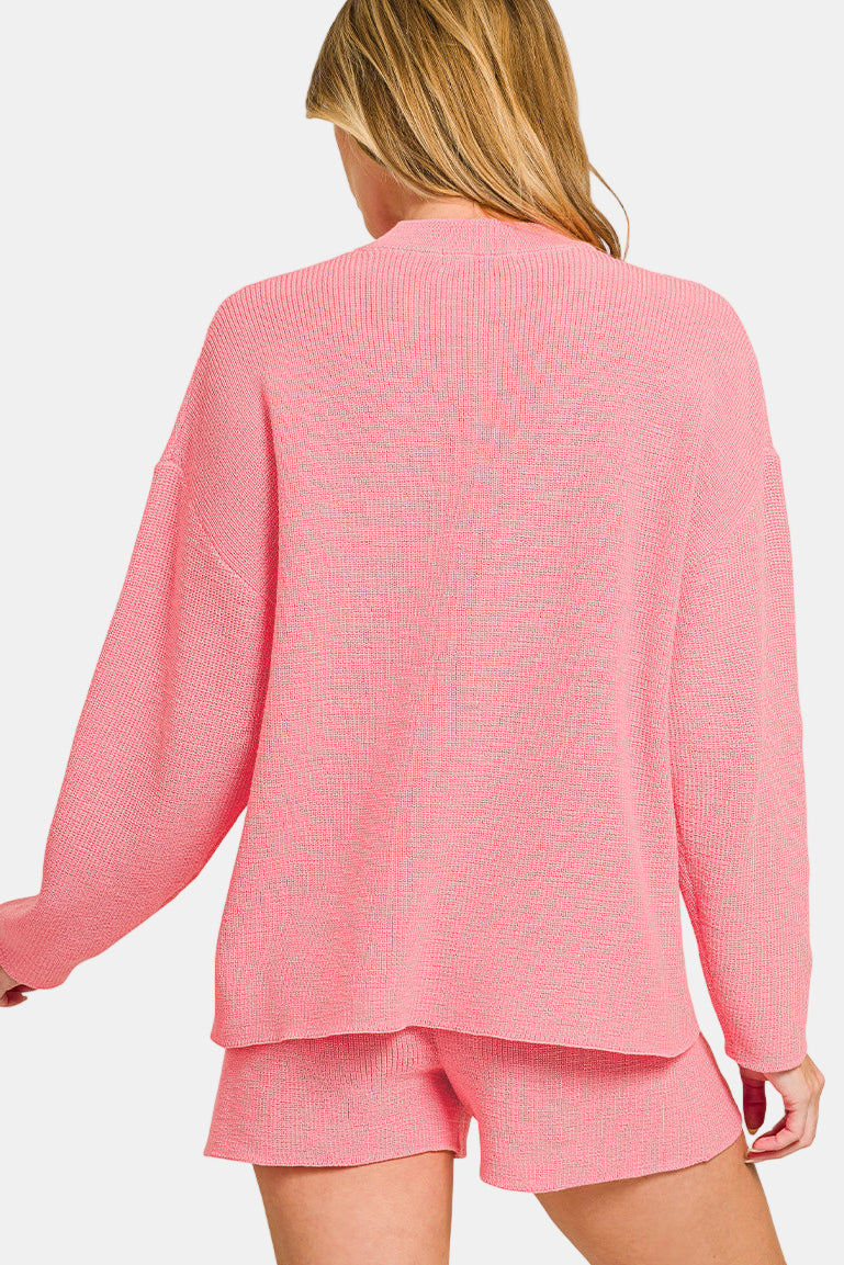 Round Neck Sweater & Sweater Shorts Set / ASH MOCHA