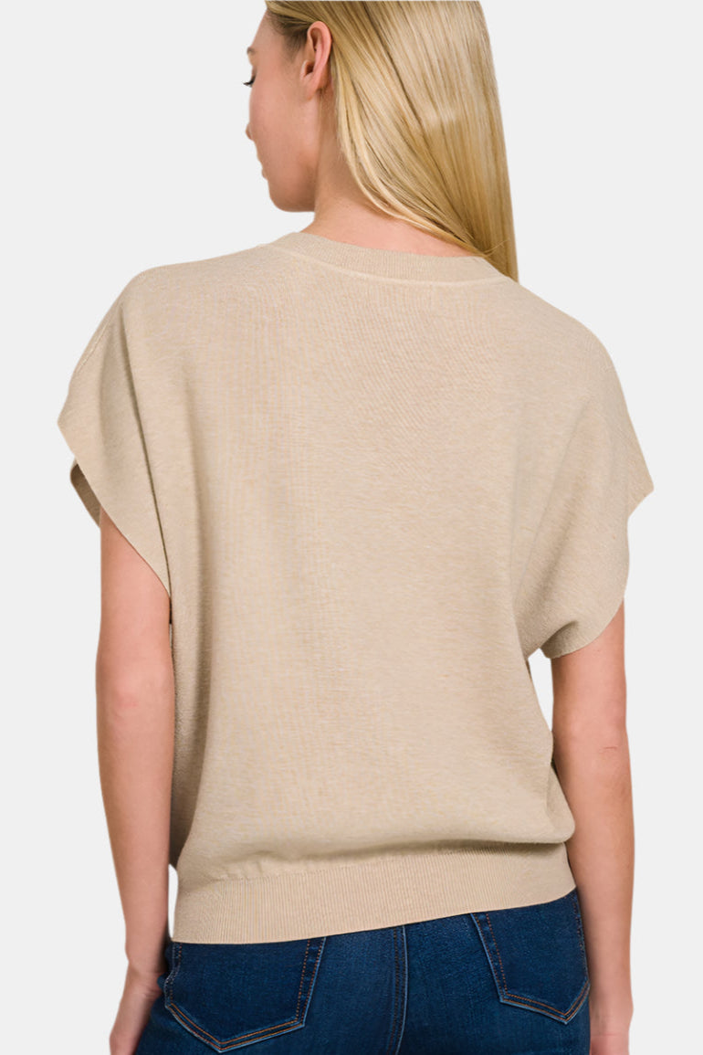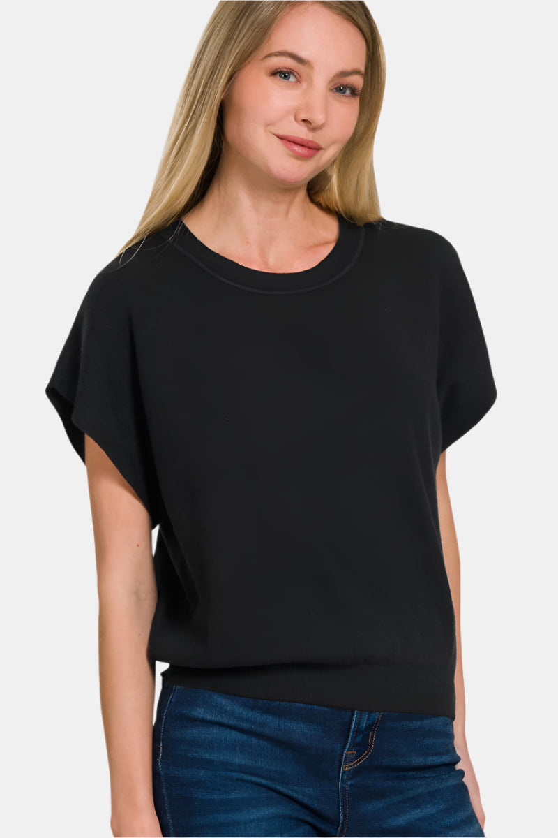 Round Neck Short Dolman Sleeve Sweater / BLACK