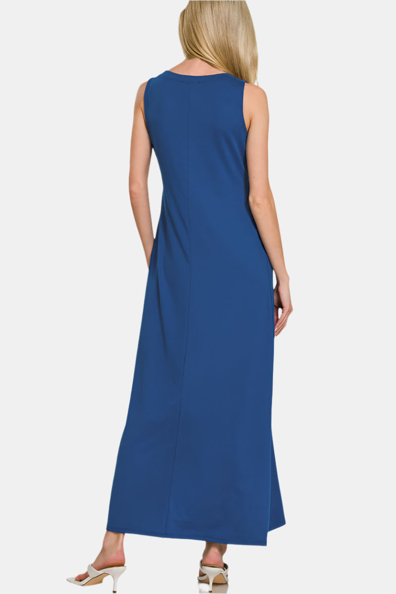 Sleeveless Flared Scoop Neck Maxi Dress / BLACK
