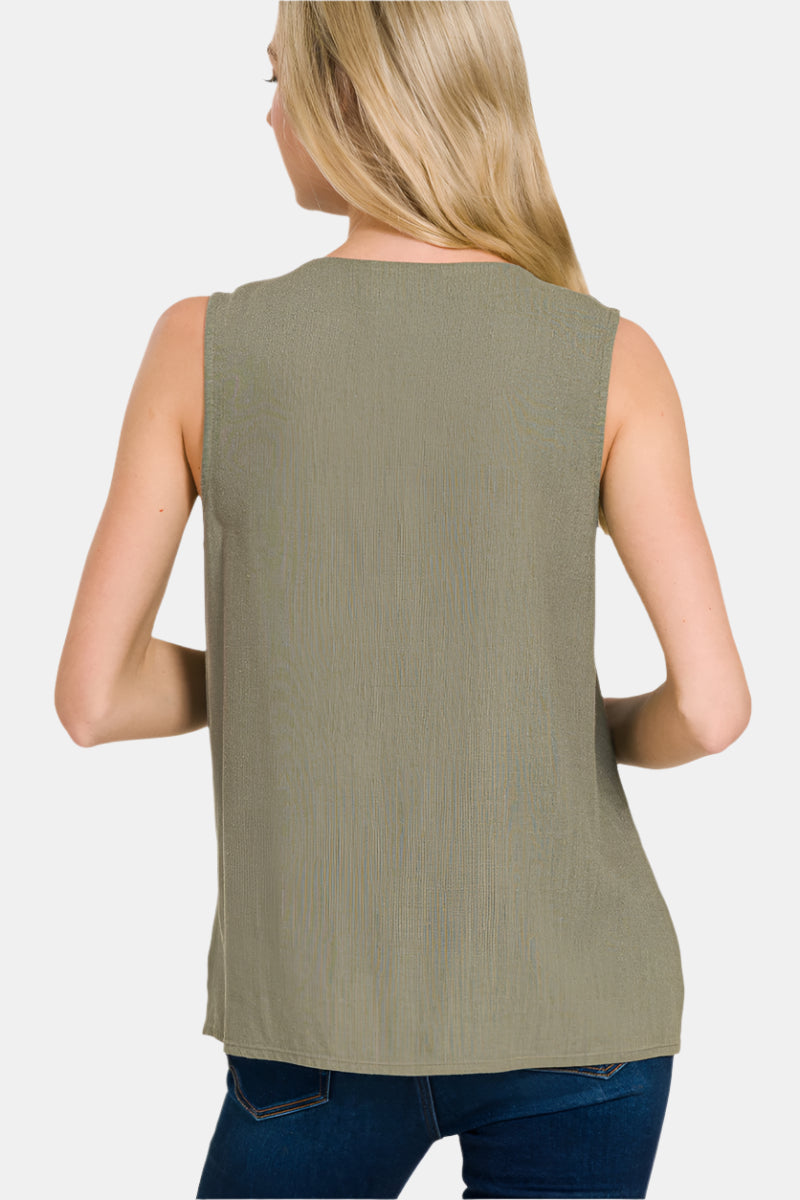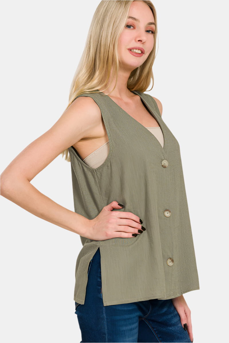 Cut from a lightweight linen blend in a relaxed silhouette, this V-neck vest is perfect for an elevated weekend.