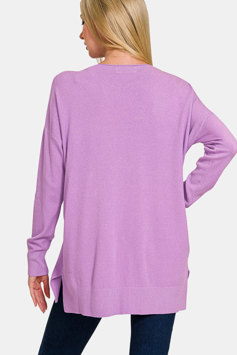 Front seam and a V-neckline add soft structure to a cozy staple sweater you'll wear on repeat.