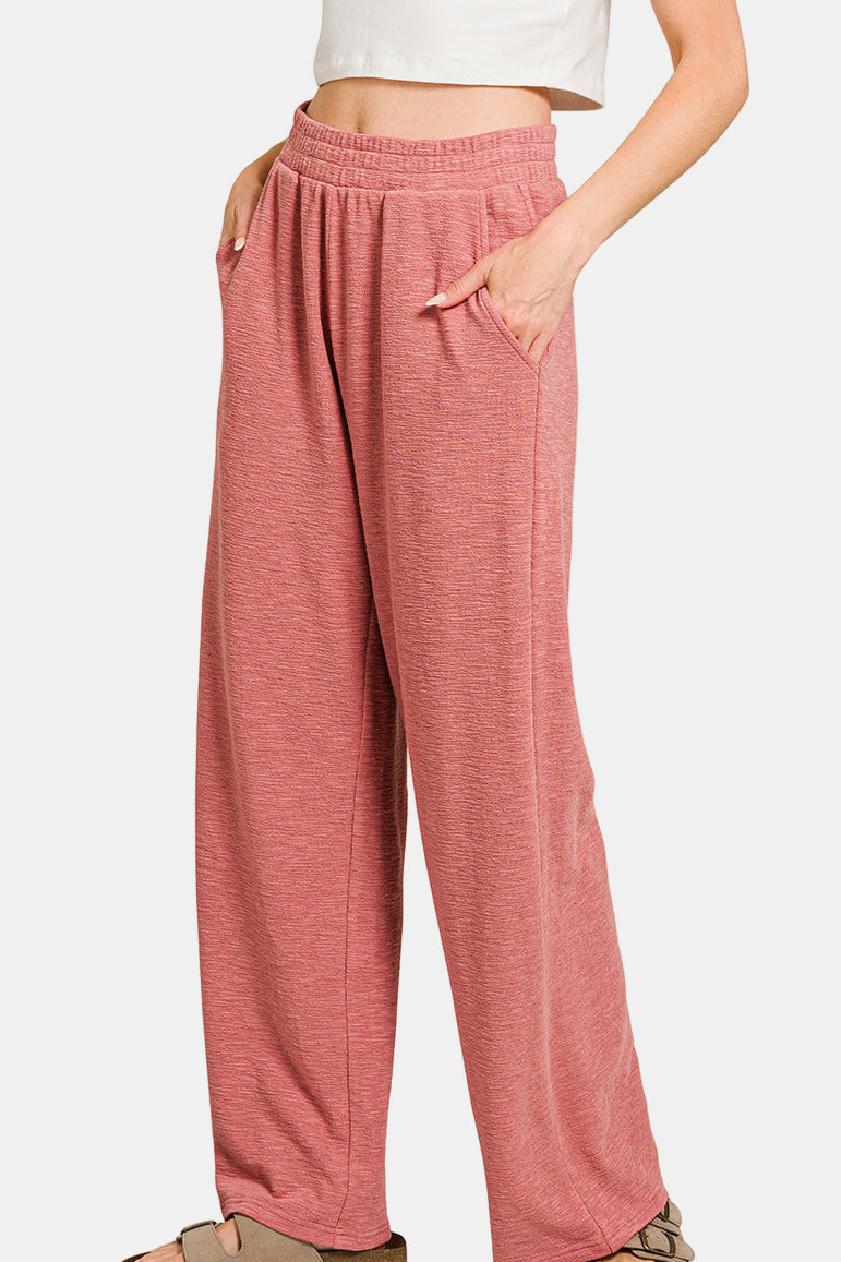 A cotton slub top and pants set features an easy elastic waist and pockets for all-day comfort.