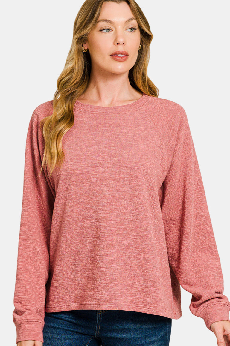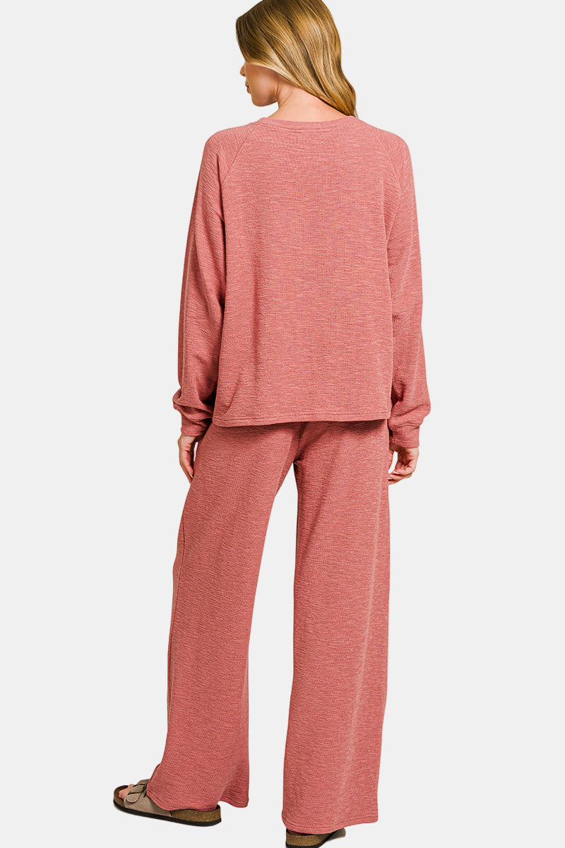 Slub Long Sleeve Top & Pants Set / BROWN