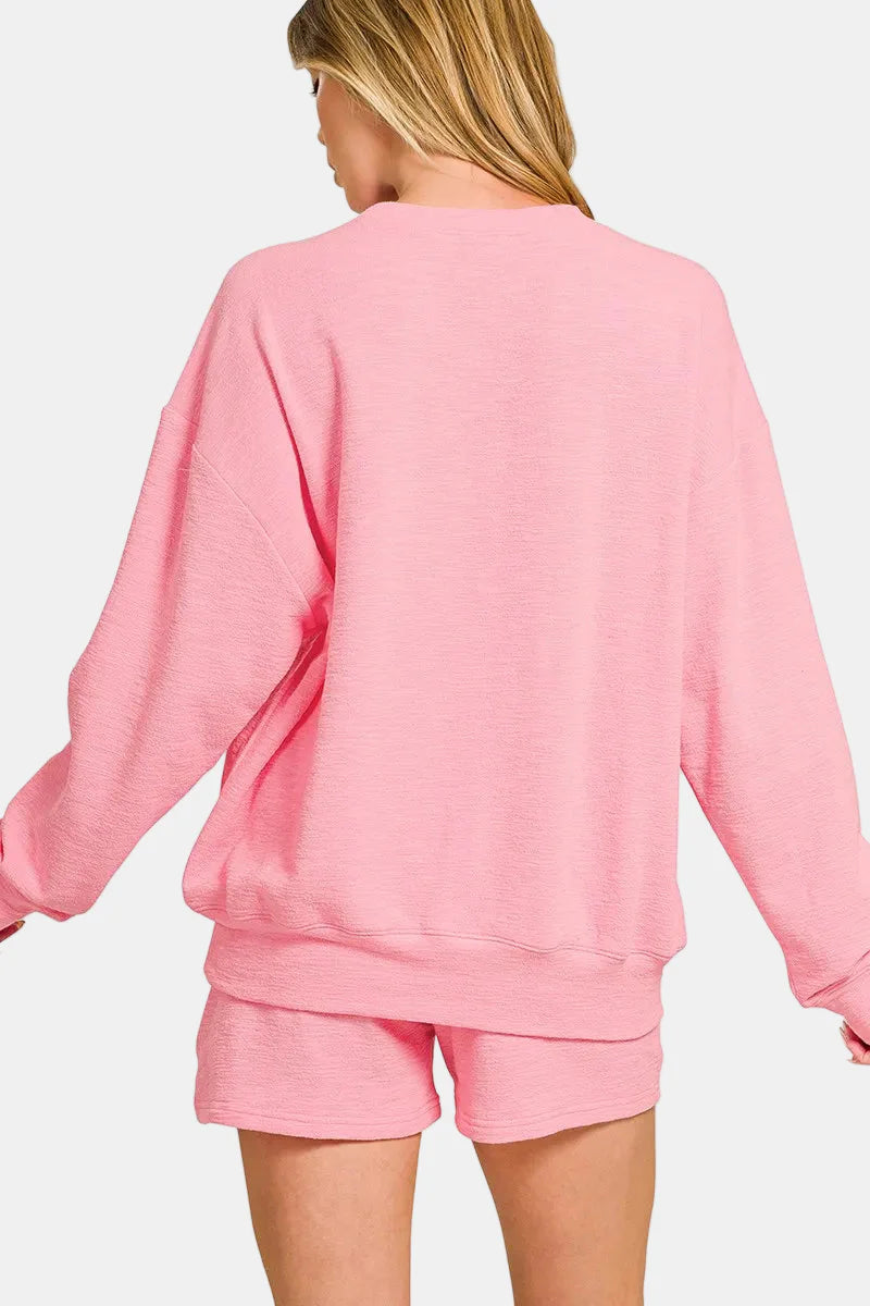 A slouchy pullover and matching shorts come together in this easygoing lounge set fashioned from soft slub fabric.