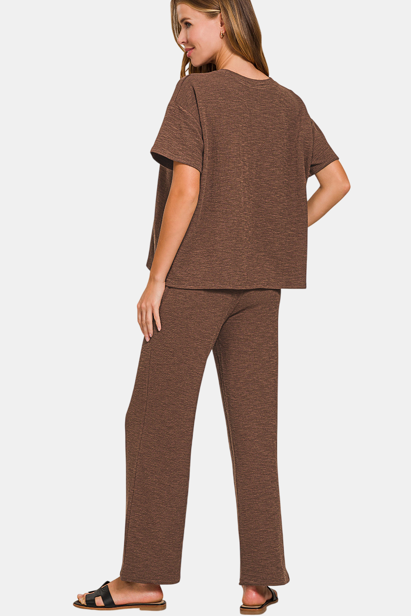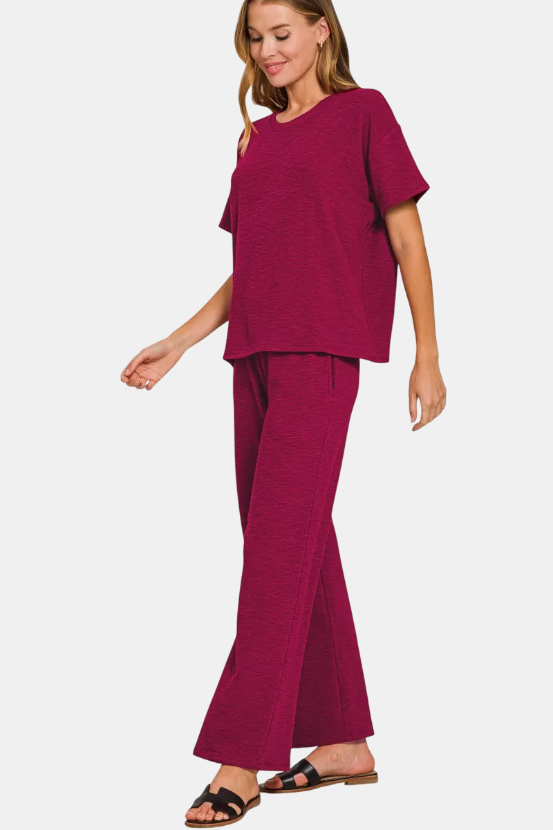 Slub Short Sleeve Top & Pants Set / CABERNET