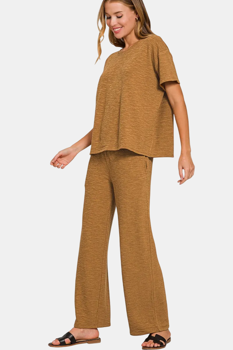 Slub Short Sleeve Top & Pants Set / DEEP CAMEL